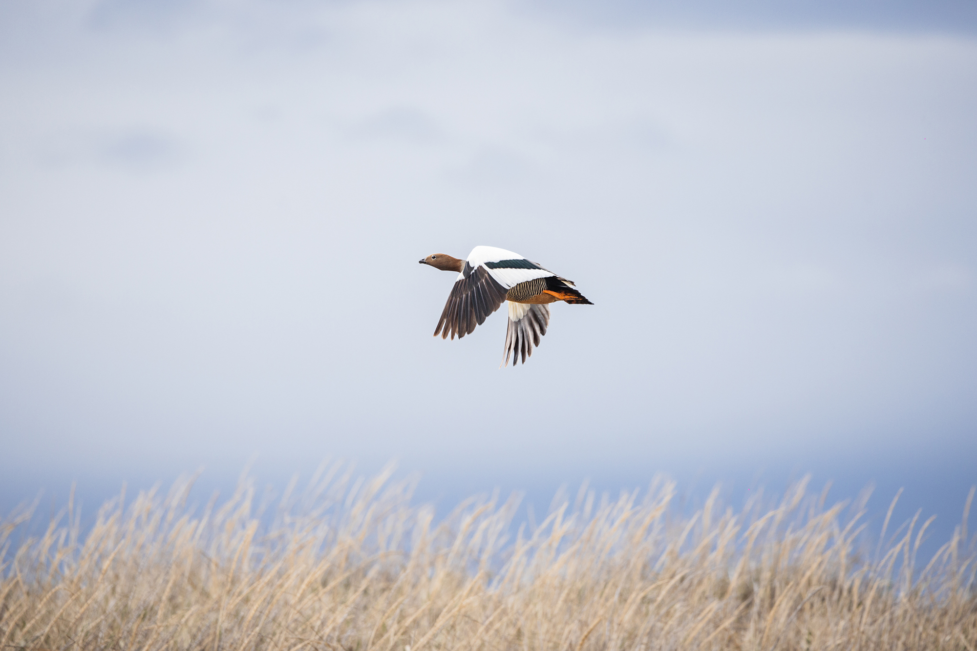 At the mouth of the San Juan River, 65 kilometers from Punta Arenas—the capital of the Magallanes Region—lies one of the most important breeding sites for the Ruddy-headed Goose (Chloephaga rubidiceps), one of the four goose species endemic to Patagonia. Today, this species is endangered, with fewer than 1,000 individuals recorded across its entire range.