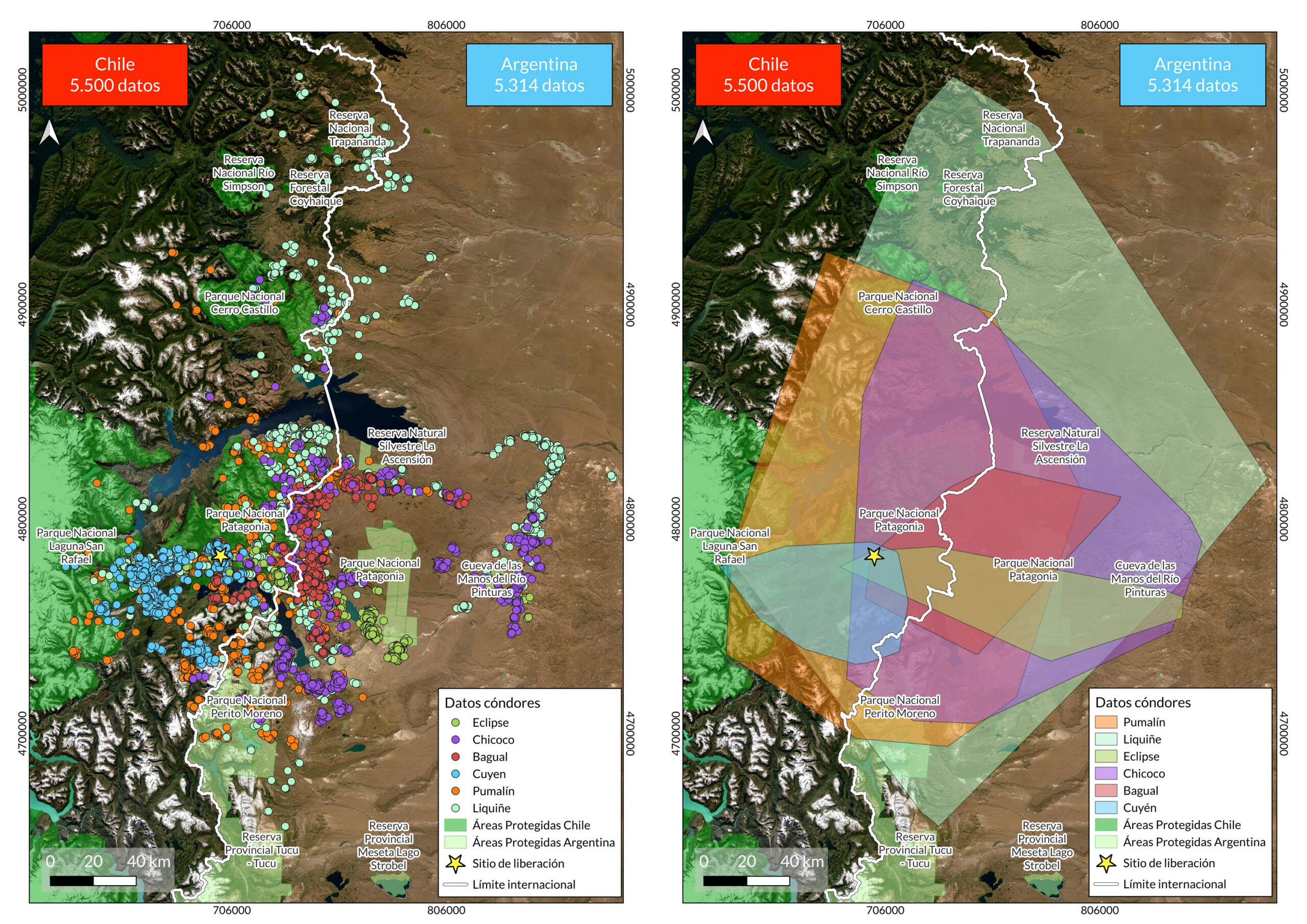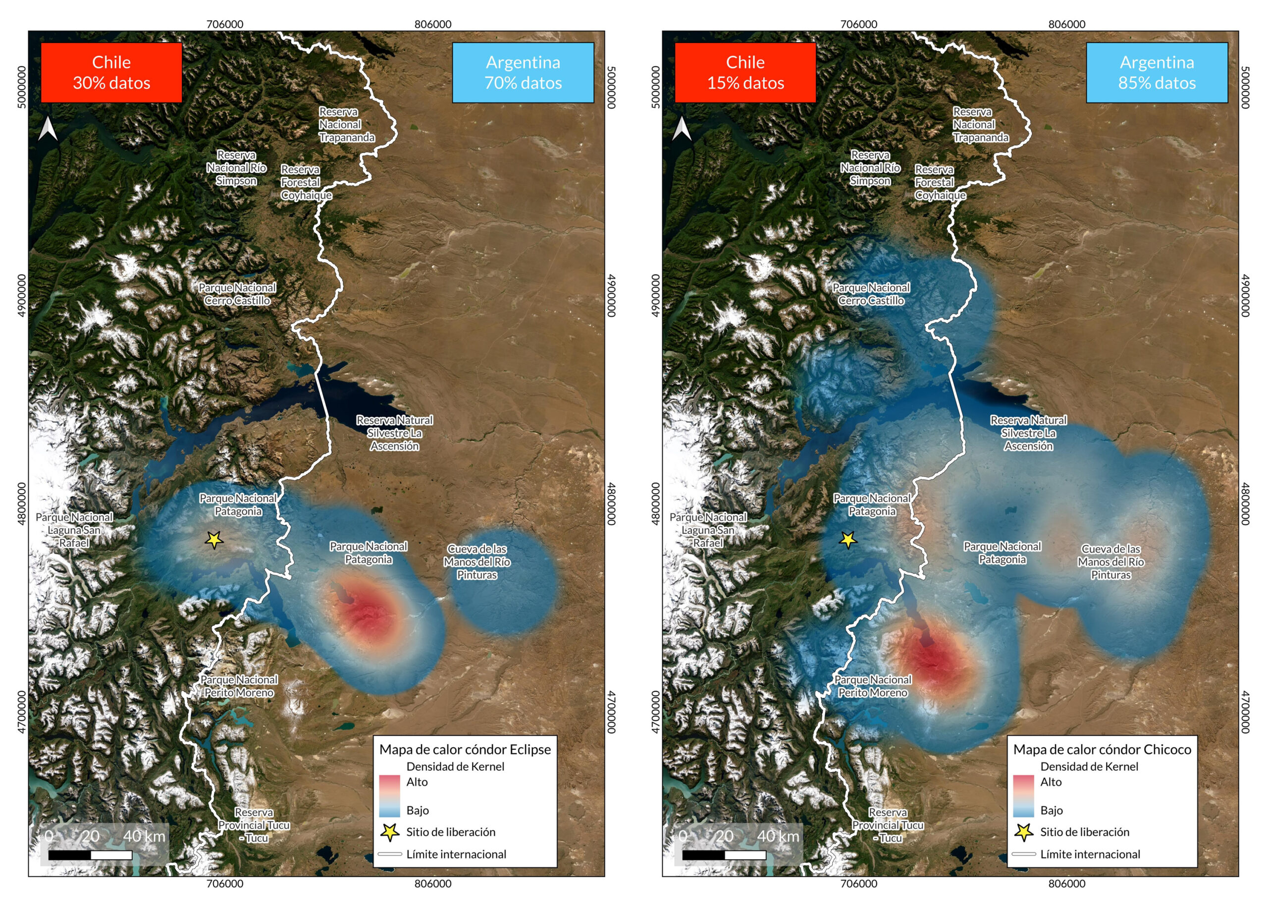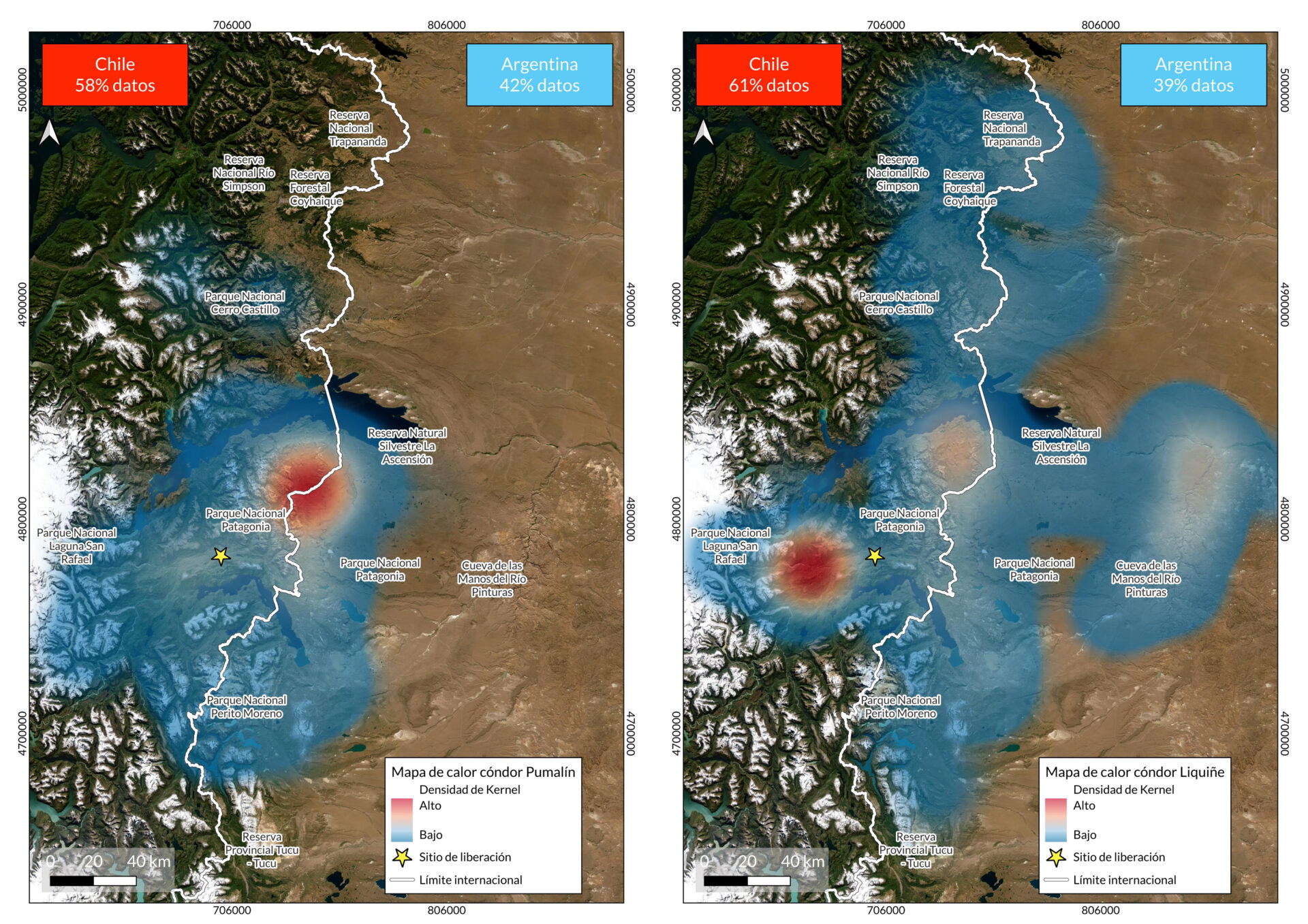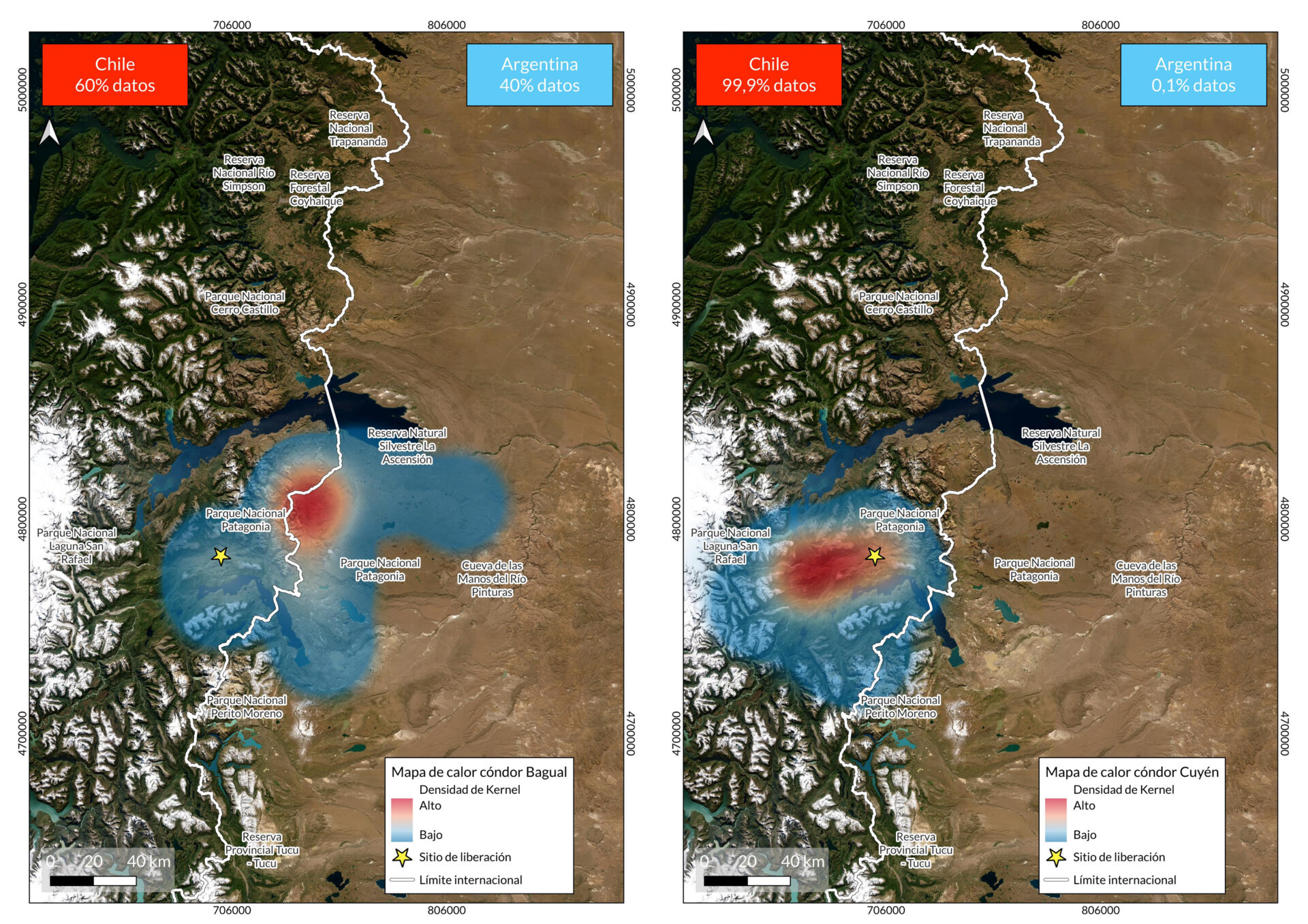 En este contexto, el seguimiento satelital de seis cóndores liberados en el Parque Nacional Patagonia, ubicado en la Región de Aysén, ha permitido comprender en detalle sus desplazamientos, adaptación y uso de hábitats en la Patagonia chilena y argentina. La información obtenida desde 2022 muestra rangos de hogar que superan millones de hectáreas, travesías cordilleranas y un predominio de movimientos fuera de áreas protegidas, lo que plantea nuevos desafíos de conservación.