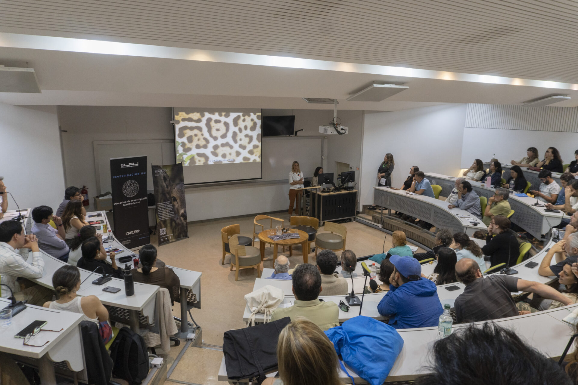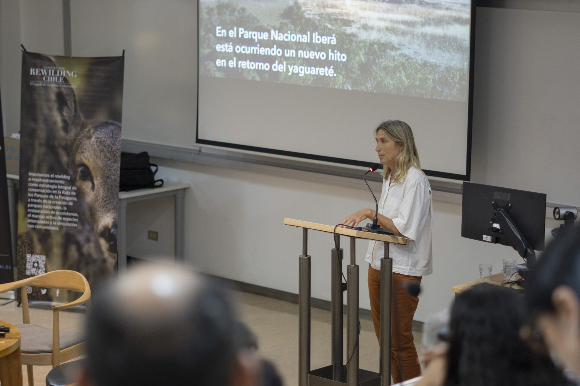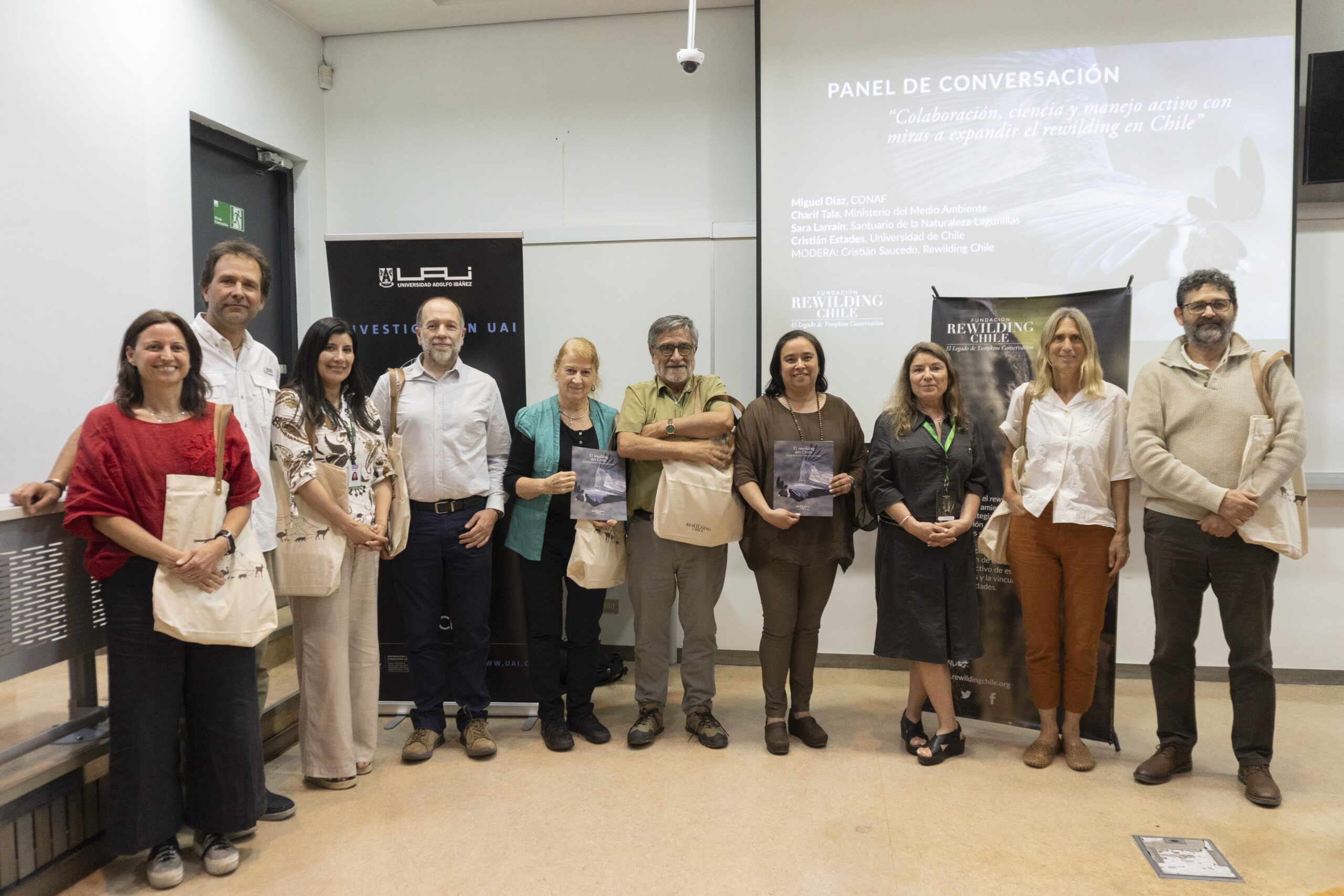 La jornada incluyó presentaciones de Patricia Miranda, Jefa del Departamento de Vida Silvestre del SAG; Charif Tala, Jefe del Departamento de Conservación de Especies del Ministerio del Medio Ambiente; Cristián Estades, Profesor Titular de la Facultad de Ciencias Forestales y de la Conservación de la Naturaleza de la Universidad de Chile; y Sara Larraín, gestora del Santuario de la Naturaleza Lagunillas y representante de la red de Santuarios de la Naturaleza de la Región Metropolitana. Los especialistas coincidieron en la necesidad de fortalecer una institucionalidad moderna que acompañe la restauración ecológica, fortaleciendo el control de amenazas como especies exóticas invasoras, promoviendola colaboración público-privada y avanzar hacia políticas públicas que reconozcan el manejo activo como parte integral de la agenda de conservación en el país. El encuentro también contó con una mirada internacional a cargo de Sofía Heinonen, Directora Ejecutiva de Fundación Rewilding Argentina.