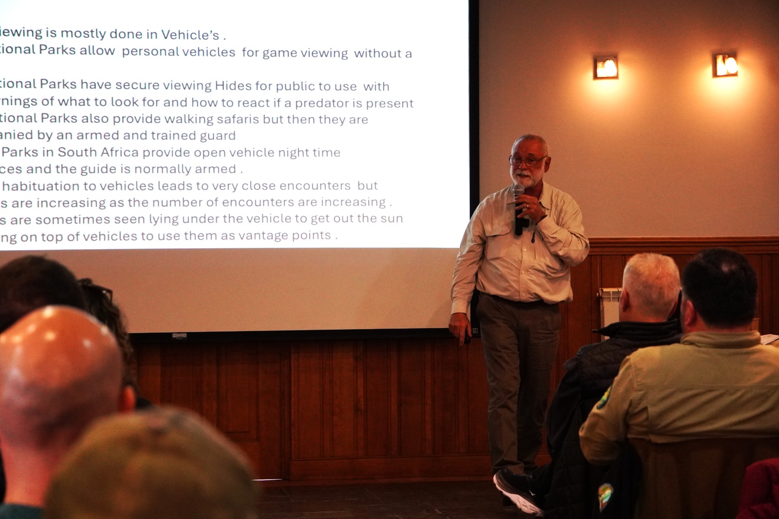 En el seminario realizado en Puerto Natales, participó el biólogo estadounidense Jim Williams, quien ha liderado programas de conservación del lobo y el oso grizzly en Montana: “En muchos lugares del mundo hemos aprendido que la coexistencia entre grandes carnívoros y comunidades es posible si hay reglas claras y una buena gestión. Eso es lo que vengo a compartir con Chile”.